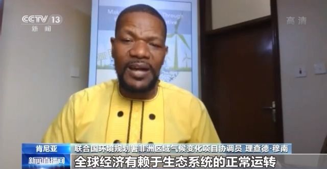 联合国环境规划署非洲区域气候变化项目协调员 理查德·穆南:气候变化已经不容我们忽视,各国都已经感受到它的影响。以非洲大陆为例,它在影响着粮食安全领域,具体体现在粮食产量和营养价值方面,每天有2.57亿人在饥饿中入睡。最新统计数据显示,气候变化将使我们的农作物减产高达40%。