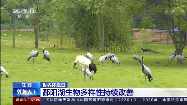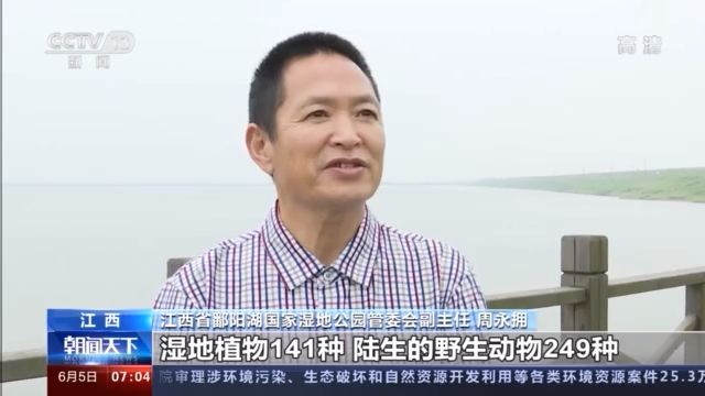 江西省鄱阳湖国家湿地公园管委会副主任 周永拥:据监测,我们鄱阳湖湿地公园的湿地植物有141种,陆生的野生动物有249种,其中列为国家一级的陆生野生动物达17种之多,生物的多样性明显增多。