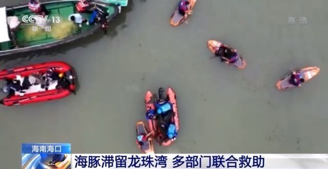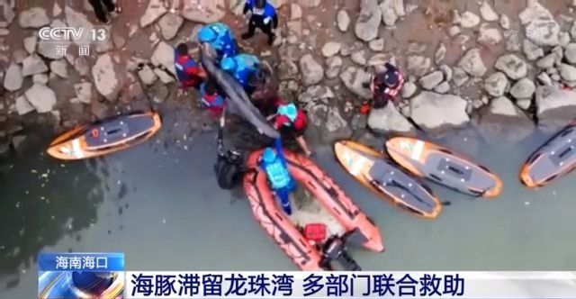 昨天(4日)上午,海南海口市龙珠湾内发现一只滞留海豚,相关部门协同蓝天救援队海上搜救队以及专家组对其开展了联合救助工作。