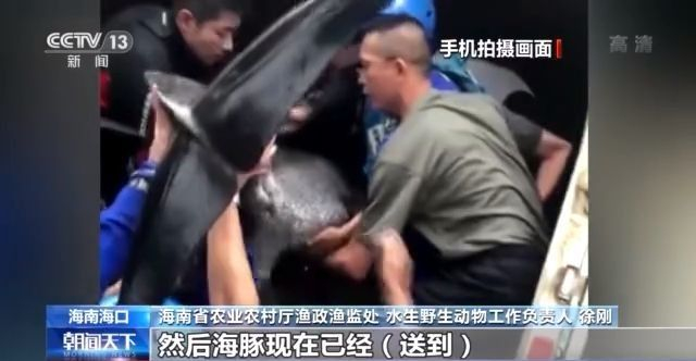 海南省农业农村厅渔政渔监处 水生野生动物工作负责人 徐刚:专门运海豚的水箱车也在旁边等着,所以一系列的动作都做得比较成功。海豚现在已经送往儋州海花岛水生野生动物救助中心,他们有能力救助鲸豚类动物,所以我们现在用专业的水车把它运到海花岛去,由专业的团队来开展救护。