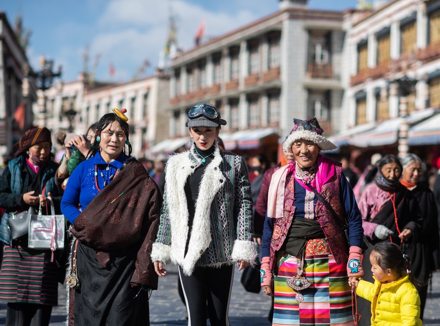 从民族风的新式藏装、商务风的衬衫、休闲款的牛仔裤,到“国潮”T恤、海外品牌的羽绒服,“90后”藏族姑娘德央总能根据不同季节、场合,在她的衣柜中找到多种穿搭选择。