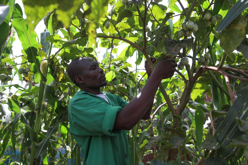 6月2日,弗雷德里克·奥金达在打理菜园。新华社记者龙雷摄