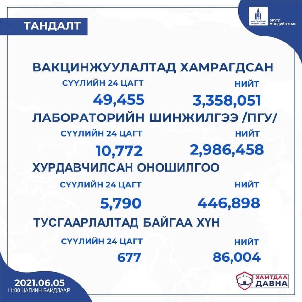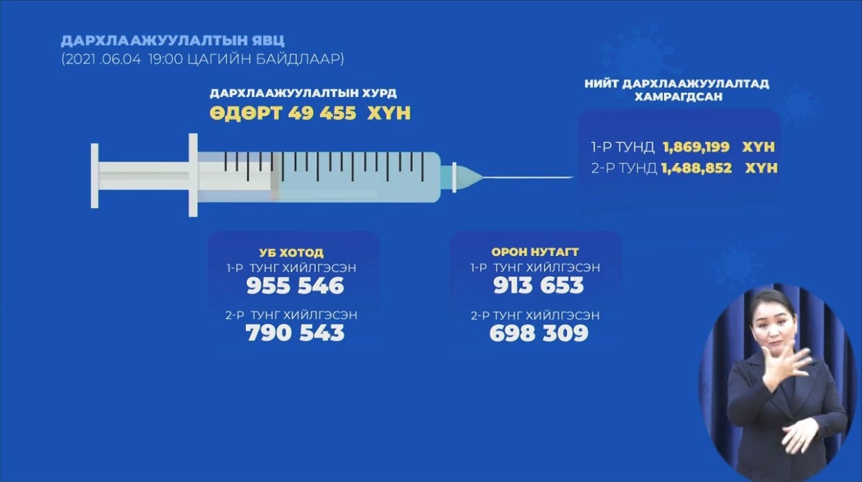 △截至4日19时,蒙古国累计接种新冠疫苗已达3358051剂次(图片来源:蒙古国卫生部官网)