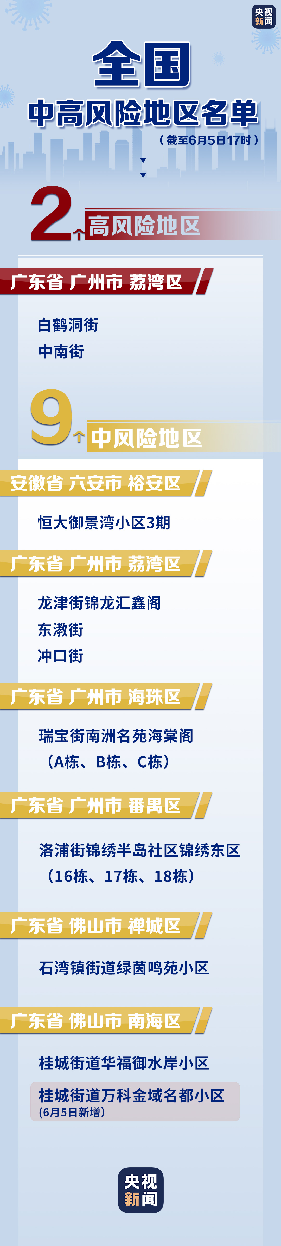 据“南海发布”消息,6月5日,广东佛山市南海区桂城街道万科金域名都小区风险等级由低风险调整为中风险。