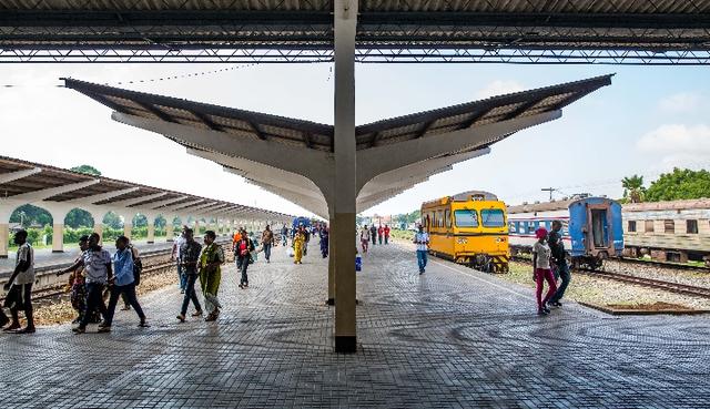2019年2月14日,在坦赞铁路达累斯萨拉姆站,乘客在列车抵达后陆续出站。新华社记者 吕帅 摄