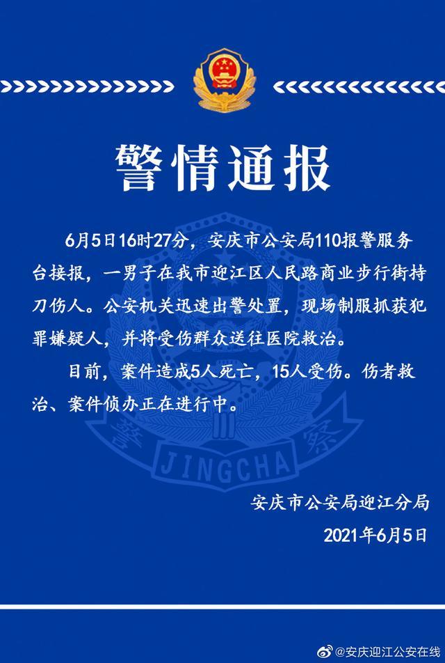 安徽男子当街持刀行凶,致5死15伤,警方通报