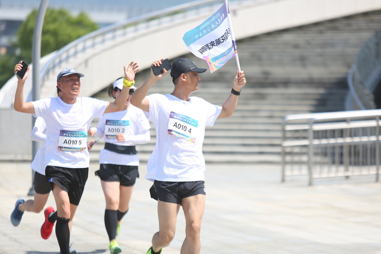 在梅山红桥上多支队伍拍照打卡,该桥凝聚了北仑区的很多美好回忆,一位来自巴基斯坦的国际友人说:“这里的风景真是美,目之所及皆是画中。”