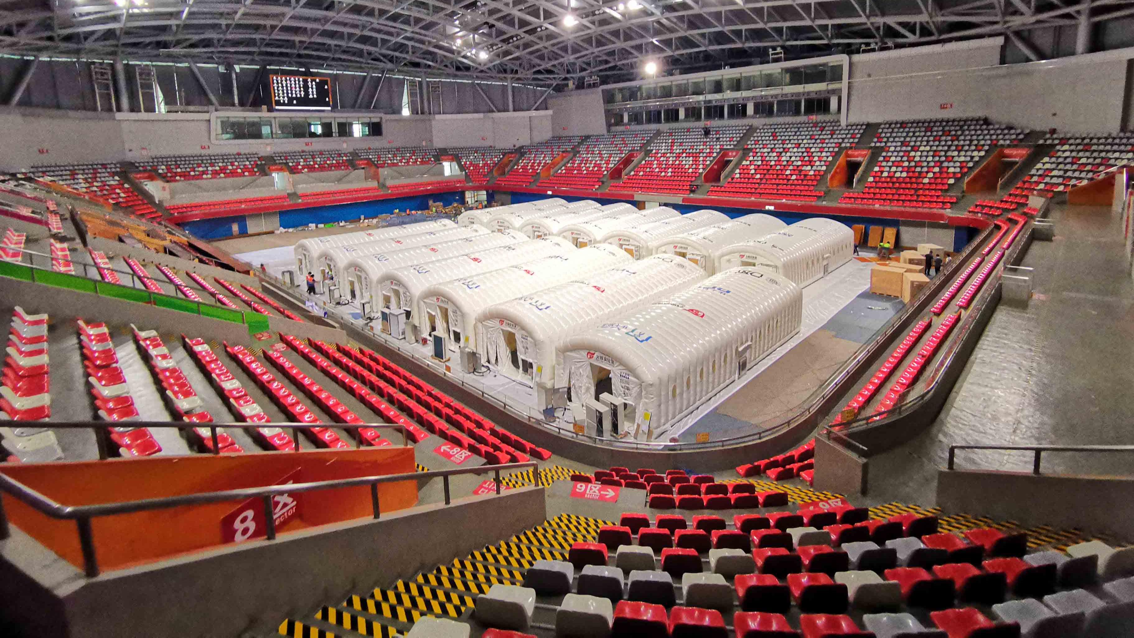 为保障广州抗疫工作顺利进行,广州市决定在番禺区亚运城综合馆搭建“火眼”实验室。在搭建“火眼”实验室物料运达场馆前,番禺区组织了区文广旅体局、区消防救援大队、珠江文体、利合地产、区供电局和中国电信等单位投入500人为“火眼”实验室完成5000平方米地面平整保护、电路搭建、网络信号保障等工作,争分夺秒为“火眼”实验室建设保驾护航。6月4日24时,搭建“火眼”实验室的物料到场后,工作人员连夜赶工,仅用10小时完成了“火眼”实验室的基础设施搭建。