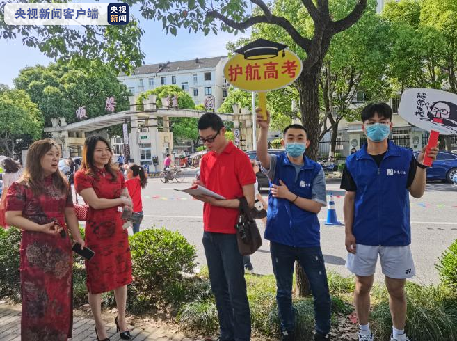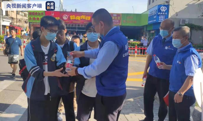 考点现场,金高公交党员、积极分子以及青年团员志愿者们穿着蓝色马甲协助交警疏导道路交通,为高考考生提供一条绿色通道。同时,志愿者们还准备了清凉油、酒精消毒棉片、矿泉水等供考生和家长使用,全力为考生保驾护航。(总台央视记者 徐鸣佳)