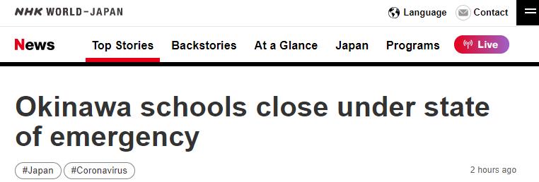 据日本广播协会(NHK)报道,日本南部冲绳县多所学校从6月7日起暂时关闭,以遏制新冠病毒的传播。