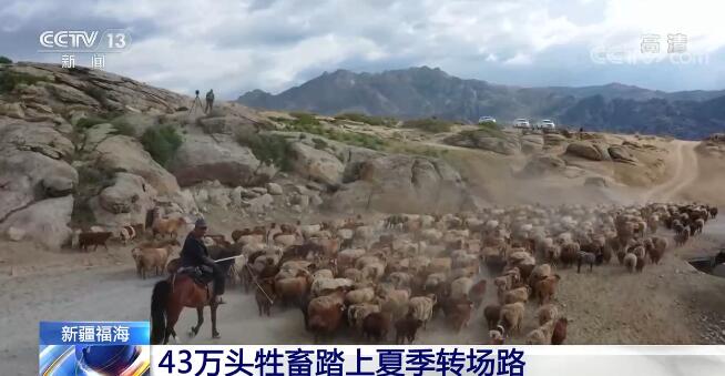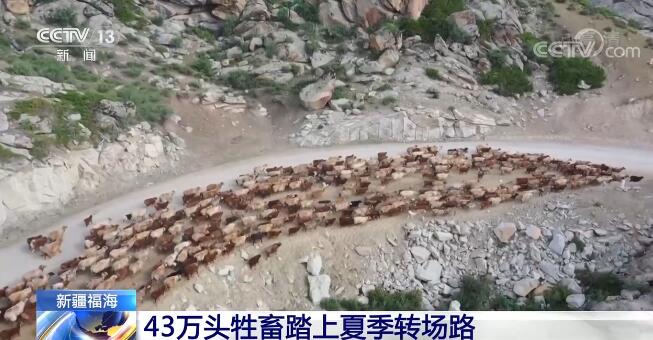 央视网消息:进入6月份,新疆阿勒泰地区福海县数十万头牲畜进入夏季转场的季节,从春秋牧场转向高山夏牧场。