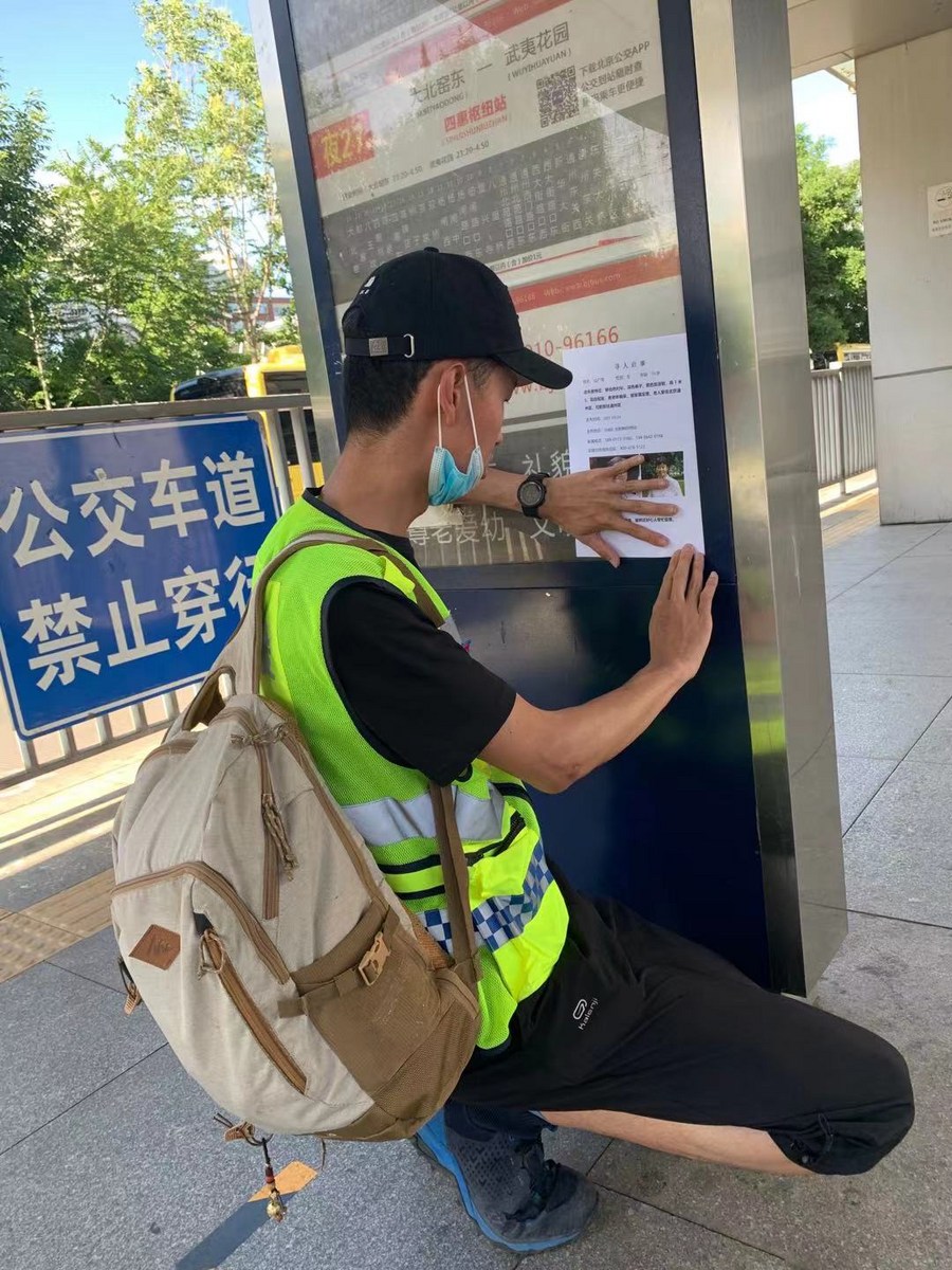 志援救援队的志愿者们在街头张贴寻人启事。(受访者供图)