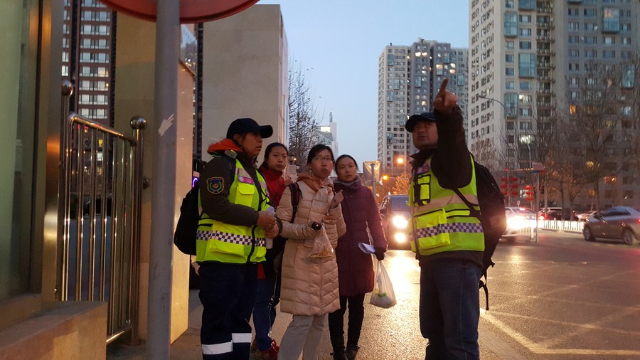 志援救援队的志愿者们在冬天的北京街头寻找走失老人。(受访者供图)