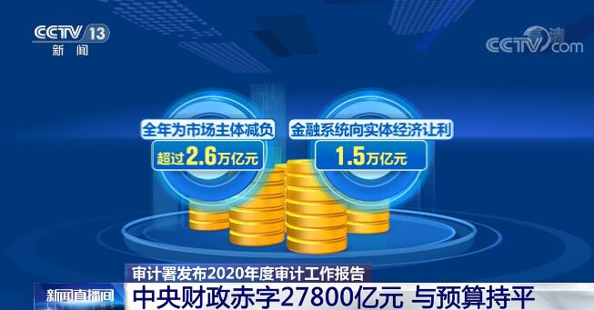 审计结果表明,积极的财政政策和稳健的货币政策取得明显成效。全年为市场主体减负超过2.6万亿元,金融系统向实体经济让利1.5万亿元;对新增2万亿元中央财政资金建立直达机制,省级财政加大资金下沉力度,为市县基层及时补充财力;全年固定资产投资(不含农户)增长2.9%,对经济恢复增长发挥了重要作用。