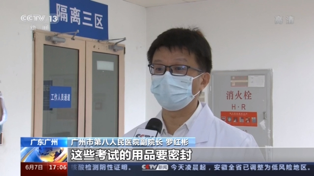 广州市第八人民医院副院长 罗红彬:这个考生答完考试结束之后,我们对试卷答题卡还有稿纸,这些考试的用品呢要密封,要进行严格的消毒,至少要消毒两遍以上,保证出考场的东西都是清洁安全的,不会有什么带来这个病毒的传播。
