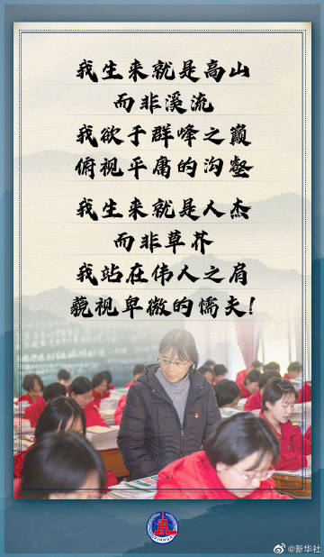 【#张桂梅带领高考学生再念誓词#】“我生来就是高山而非溪流,我欲于群峰之巅俯视平庸的沟壑。我生来就是人杰而非草芥,我站在伟人之肩藐视卑微的懦夫!”#张桂梅写下誓词激励学生走出大山#,今天,誓词再次在华坪女高上空响起。网友说:这句话看一次泪目一次。#张桂梅再送150名女高学生高考#