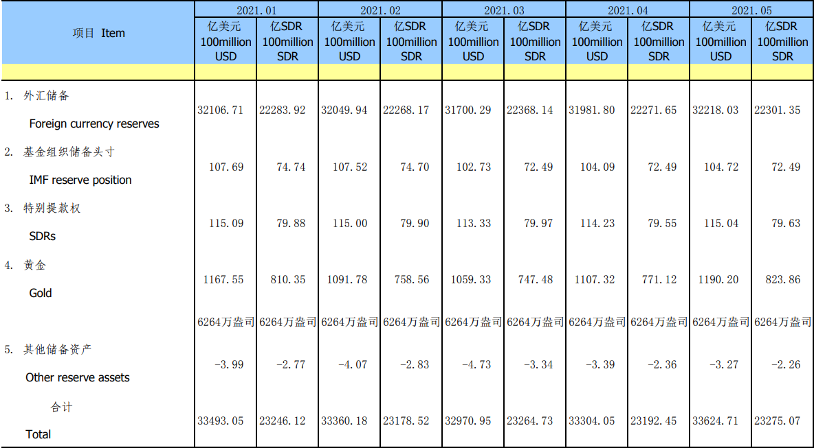 国家外汇管理局7日发布数据显示,截至2021年5月末,我国外汇储备规模为32218亿美元,较4月末上升236亿美元,升幅为0.74%。