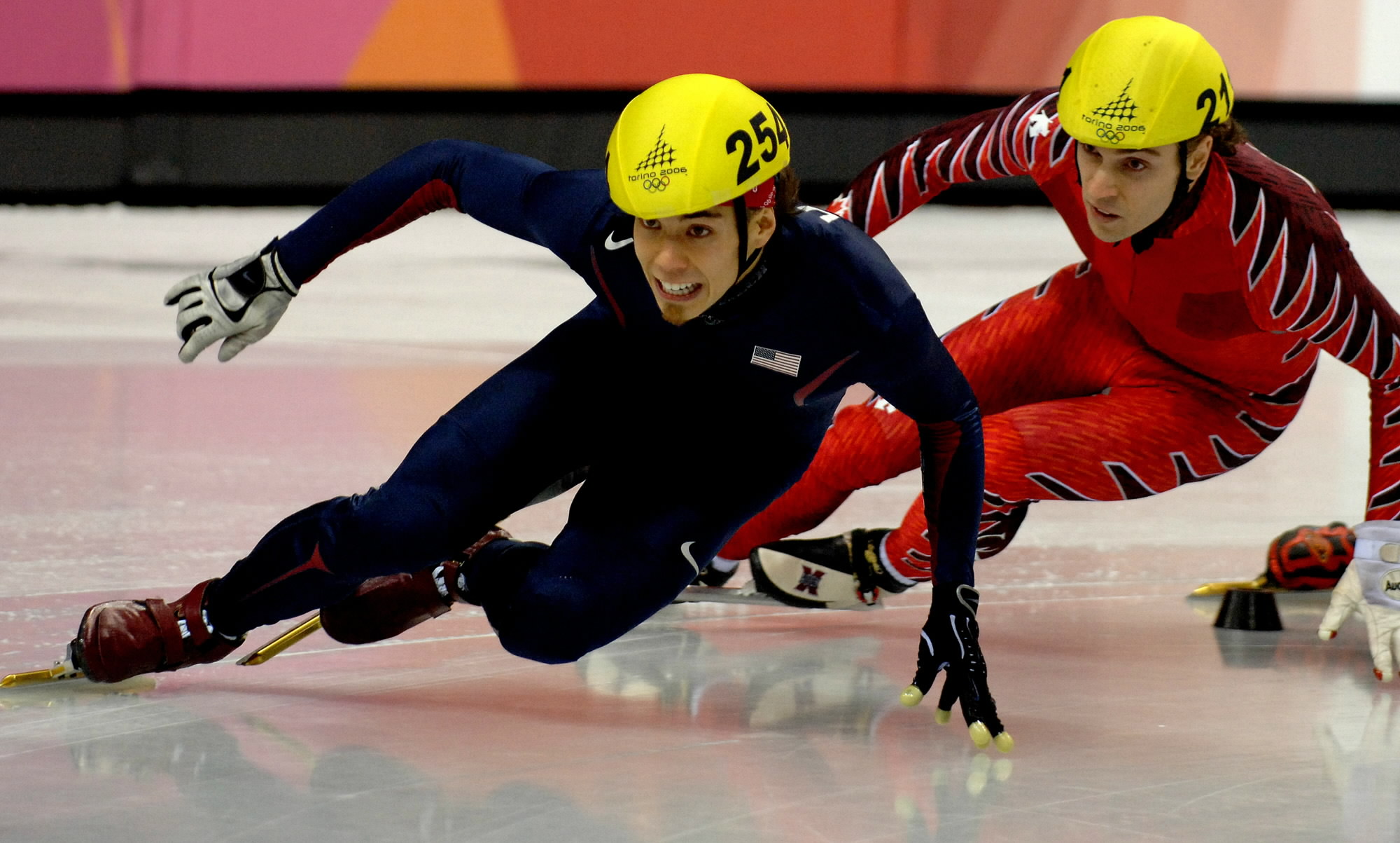 2006年2月25日,在都灵冬奥会短道速滑男子500米比赛中,美国名将阿波罗夺得金牌。新华社记者徐家军摄