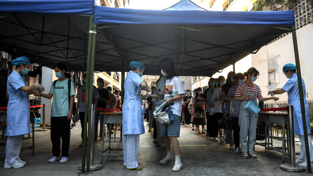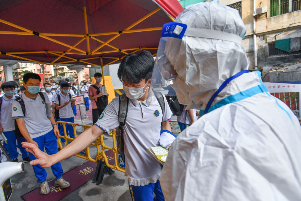 在广东,今年高考历史上首次在病房设置高考考场,为广州两名新冠肺炎阳性考生提供考试服务。广州市所有应考考生和考务人员考前100%完成两轮核酸检测,考务人员100%接种疫苗,各考点100%完成环境样本核酸检测。