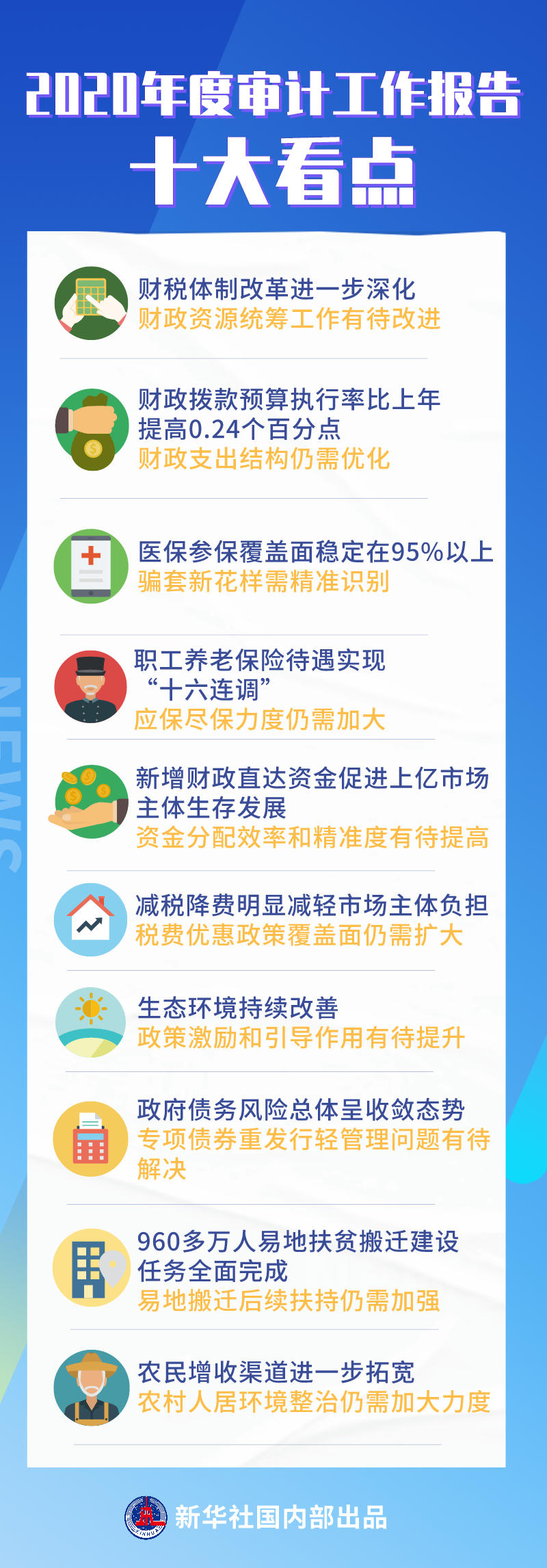 翻开这份把脉我国经济社会发展状况的体检报告,中央财政管理和中央部门预算执行情况怎么样,养老、医疗、生态环保等专项资金效益如何?减税降费、乡村振兴等重大政策措施是否落实到位?“打虎拍蝇”又有哪些新发现?审计署有关负责人第一时间为你深度解读。