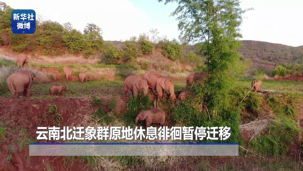 #今天大象回家了吗# 【#云南北迁亚洲象群今天暂停迁徙#】记者从云南北迁亚洲象群安全防范工作省级指挥部了解到,截至6月7日16时50分,象群持续在昆明市晋宁区夕阳彝族乡小范围原地休息徘徊,暂停迁移。监测追踪人员报告,6日离群的1头公象位于象群东偏北方向,直线距离约4公里。夕阳乡持续雷雨天气,现场指挥部对部分路段实施交通临时管制,保持静默,为引导象群向西、向南迁移创造条件。(记者孙敏、赵珮然、胡超) 新华社的微博视频
