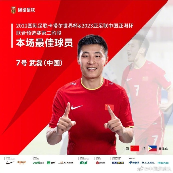 北京时间6月8日凌晨,世预赛亚洲区40强赛A组中国队与菲律宾队的比赛在阿联酋沙迦体育场进行。 37摄氏度的高温,直到53分钟都一直胶着的0比0,在近乎压抑的氛围中,又是武磊在关键时刻站了出来。自己制造点球,自己罚进,他用自己的个人能力终于打开了国足进球的开关。最终,凭借武磊和吴兴涵的进球,中国男足2比0击败了菲律宾队,拿到了剩余小组赛中最为关键的一场胜利,也将晋级12强赛的主动权把握在了自己的手中。