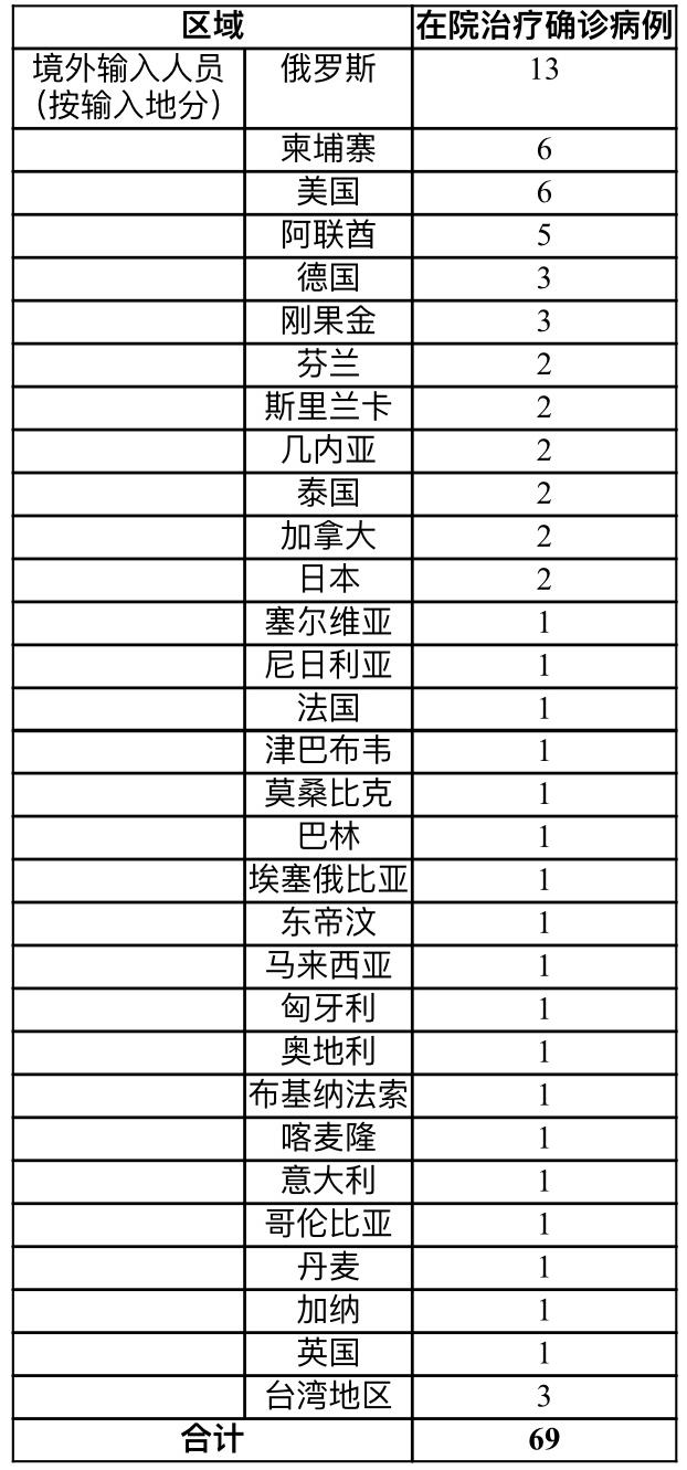 截至2021年6月7日24时,累计境外输入性确诊病例1759例,出院1690例,在院治疗69例。现有待排查的疑似病例2例。