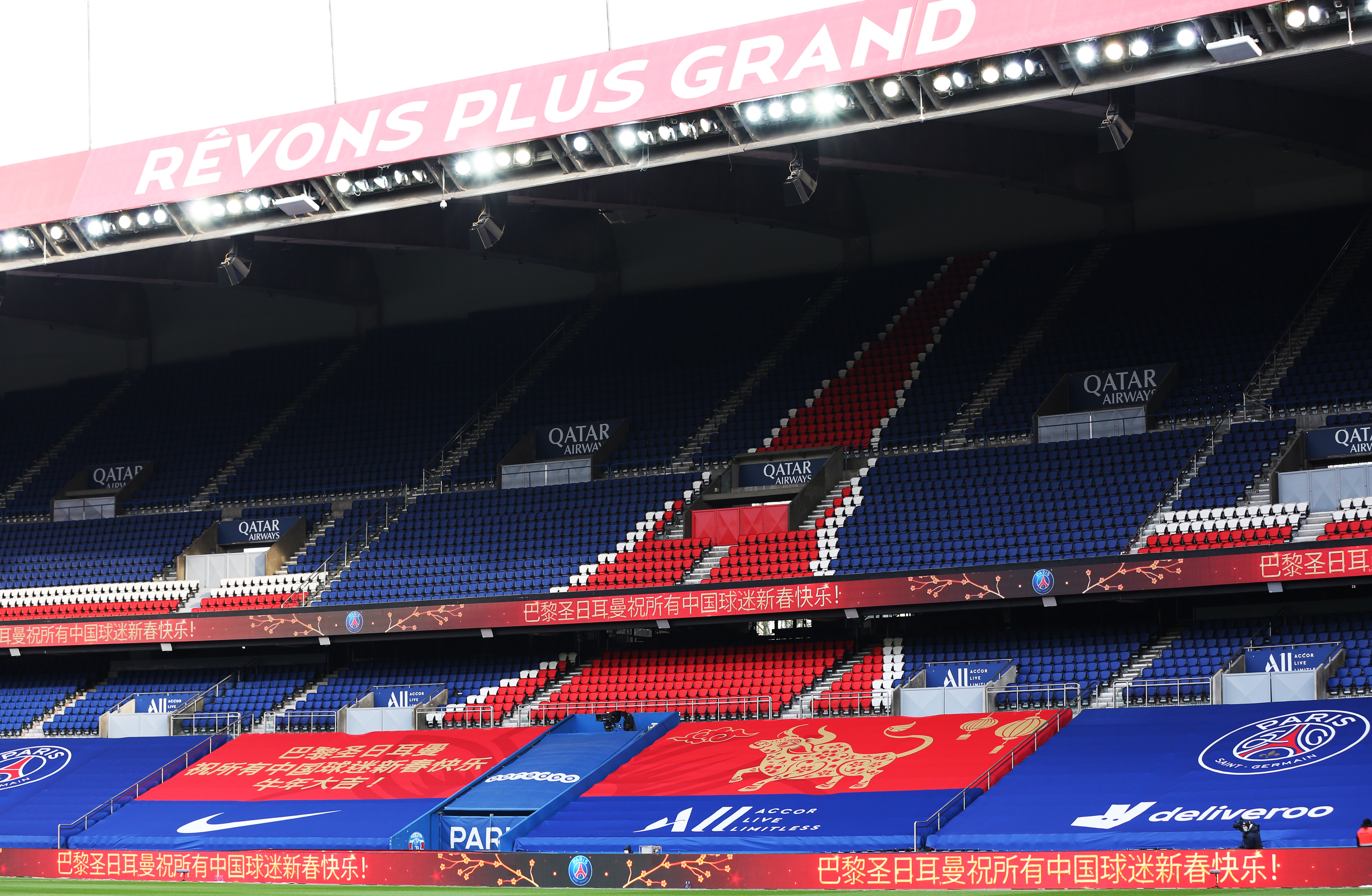 2月13日是法甲“中国日”,正值中国农历大年初二,巴黎圣日耳曼队主场随处可见的中国元素成为焦点,为比赛增添了浓郁的节日氛围。新华社记者高静摄