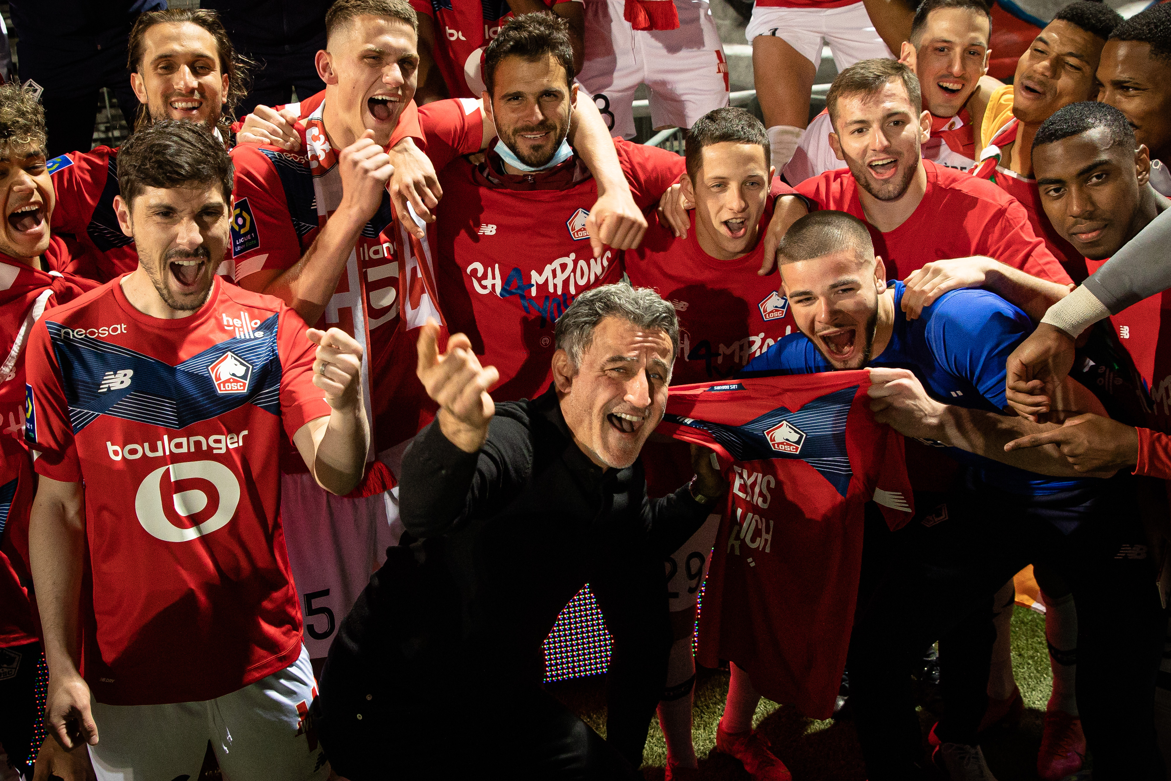 5月23日,里尔队客场以2比1击败昂热队,在积分榜上以1分优势力压巴黎圣日耳曼队,夺得法甲冠军。新华社发(奥雷利安·莫里萨尔 摄)