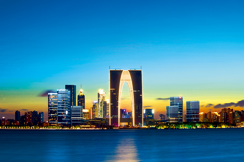 苏州工业园区湖西天际线亮灯 陈雨禾摄