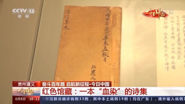 总台记者 尹平:这里是遵义会议纪念馆,纪念馆对面就是著名的遵义会议会址,每天来到这里参观的人络绎不绝,纪念馆收藏了近两千件红军长征时期在贵州留下的珍贵历史文物,比如遵义会议召开所用的桌子,见证会议召开的那口挂钟,而今天我们在纪念馆里向大家介绍的是一本看起来很不起眼的日记本。这是红军1934年刚刚进入贵州时,在黔东南地区一位侗族同胞杨和钧所留下的一本诗集,上世纪50年代杨和均的后人在整理遗物时发现了它。