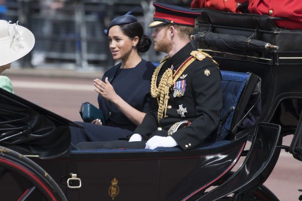 2019年6月8日,在英国伦敦,英国哈里王子与妻子梅根乘马车离开白金汉宫(新华社)