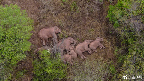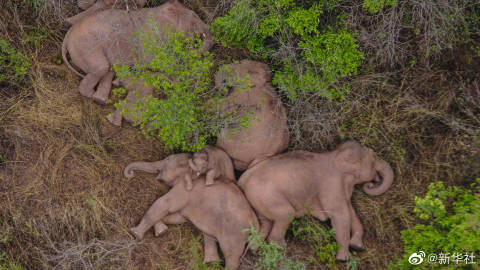 【#云南北迁象群睡觉休息画面# 好萌好温馨!】#你知道大象怎么睡觉吗#?无人机7日拍下野象在昆明市晋宁区夕阳彝族乡睡觉休息的画面。小象依偎在大象身旁,大象一个个靠在一起,画面温馨极了。据云南北迁亚洲象群安全防范工作省级指挥部,截至6月7日16时50分,象群持续在昆明市晋宁区夕阳彝族乡小范围原地休息徘徊,暂停迁移。#今天大象回家了吗#