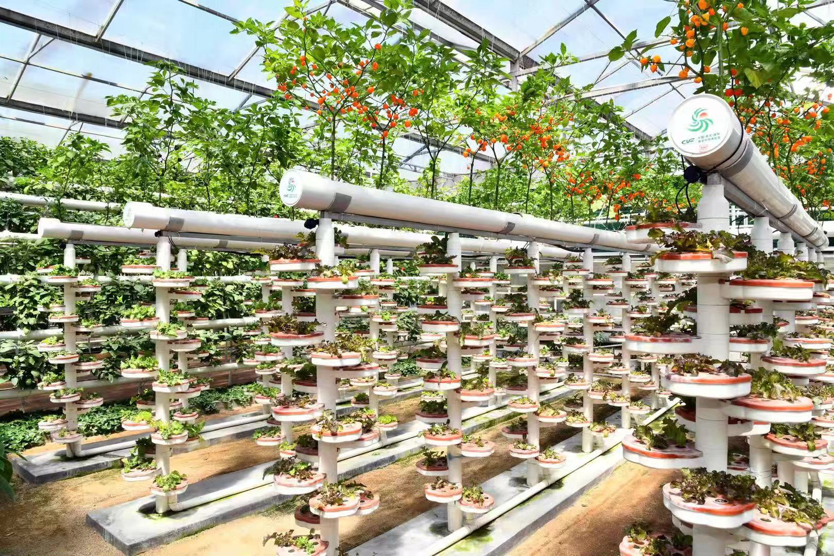 图为2020年4月20日寿光菜博会上拍摄的蔬菜无土栽培模式。 新华社记者 郭绪雷 摄