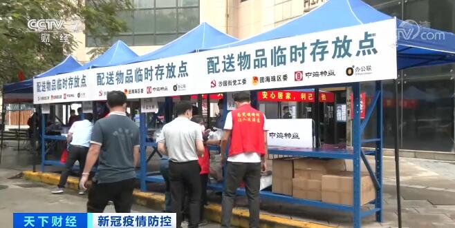 每天早上10时和下午4时是小区配送高峰期,物业和社区工作人员对货品进行统一消毒后,穿好防护服逐个配送到居民家中。最忙的时候,工作人员每20分钟就要往居民家中运送一趟。除了确保封闭小区的物资供应以外,目前广州对于所有封闭小区还采取由社区工作人员、民警和医护人员组成三人小组,每天上门对居家隔离人员进行核酸检测和健康监测,确保及时发现异常情况,及时上报。