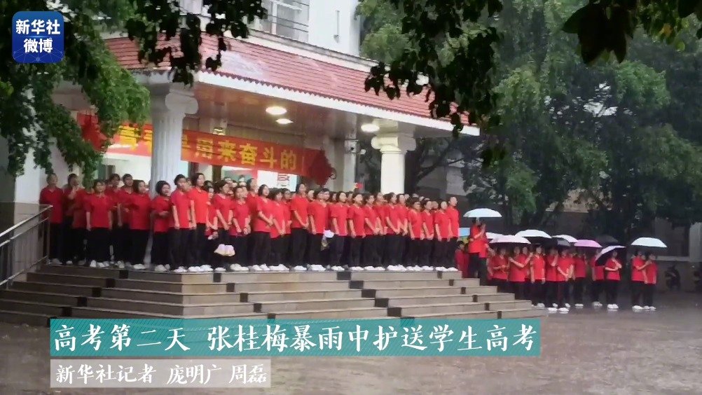 【高考第二天 #张桂梅暴雨中护送学生高考#】6月8日清晨,高考第二天,云南省丽江市华坪县突降暴雨。64岁的张桂梅在暴雨中护送150名高三学生奔赴高考考场。大山女孩们、高三学子们,为了梦想,勇敢向前冲吧!#张桂梅再送150名女高学生高考##张桂梅写下誓词激励学生走出大山#(记者:庞明广、周磊)(素材支持:华坪县融媒体中心) 新华社的微博视频