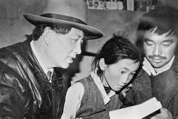 在西藏工作期间,孔繁森(左)辅导藏族儿童学习。(资料照片)