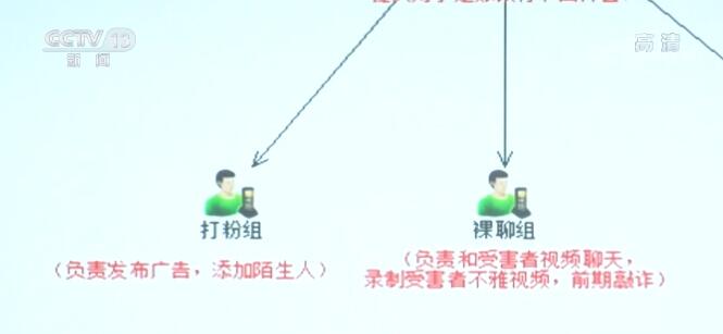 这个涉黑团伙分工明确,在实施裸聊敲诈时,业务员被分为技术、吸粉、裸聊、敲诈、安抚等小组。前期,吸粉组在各大网络平台上发布美女陪聊的视频和图片,引诱被害人加好友。 裸聊组上场后 ,谎称自己是色情直播平台“主播”,给被害人发送带有挑逗意味的文字,明示对方可以玩刺激。