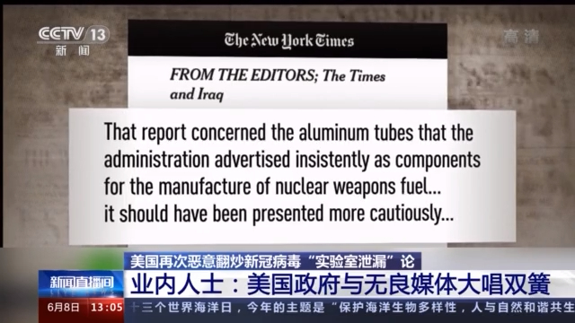 同样,美国政府与戈登等无良记者之间的“双簧戏”也与19年前如出一辙,双方驾轻就熟,默契如初,了无新意:先是匿名美国情报机构“泄露”所谓的情报,再由戈登加工成主流媒体报道,大肆渲染,制造舆论,随后白宫下令美情报部门90天内提供新冠病毒起源报告。