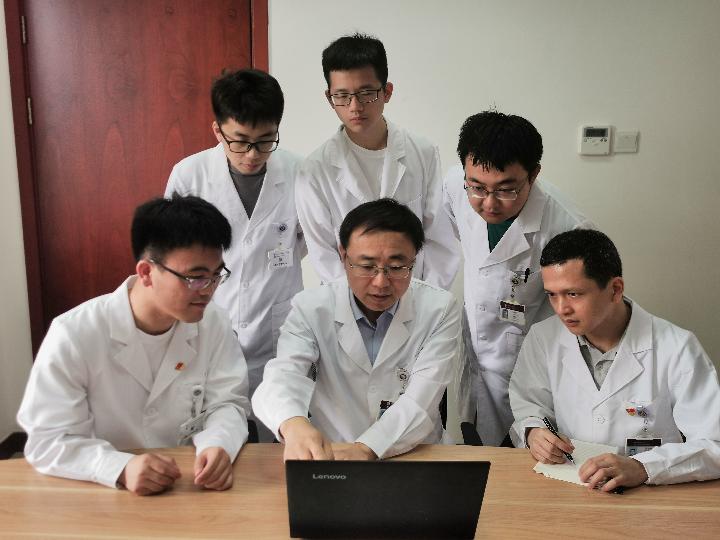 中国医学科学院阜外医院教授鲁向锋在指导学生进行科研工作。(图片由阜外医院提供)