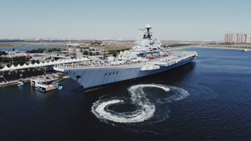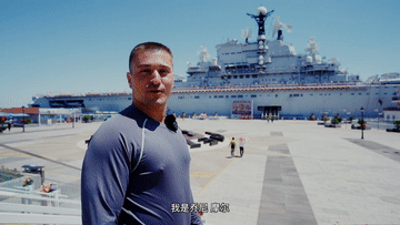 美国特技演员乔尼·摩尔背靠真实的退役航母