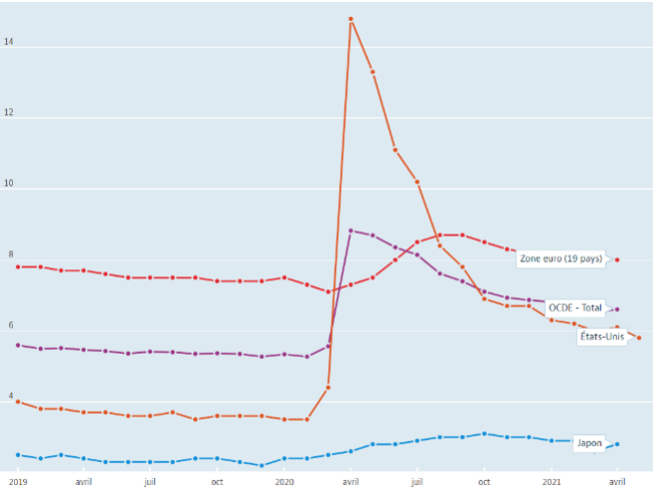 当地时间8日,总部位于法国巴黎的经济合作与发展组织发布公告称,其成员国在今年4月的整体失业率为6.6%,比3月上升0.1%,与2020年2月相比仍高出1.3个百分点。自2020年4月经合组织成员国失业率达到峰值以来,这也是该数据首次出现环比增长。