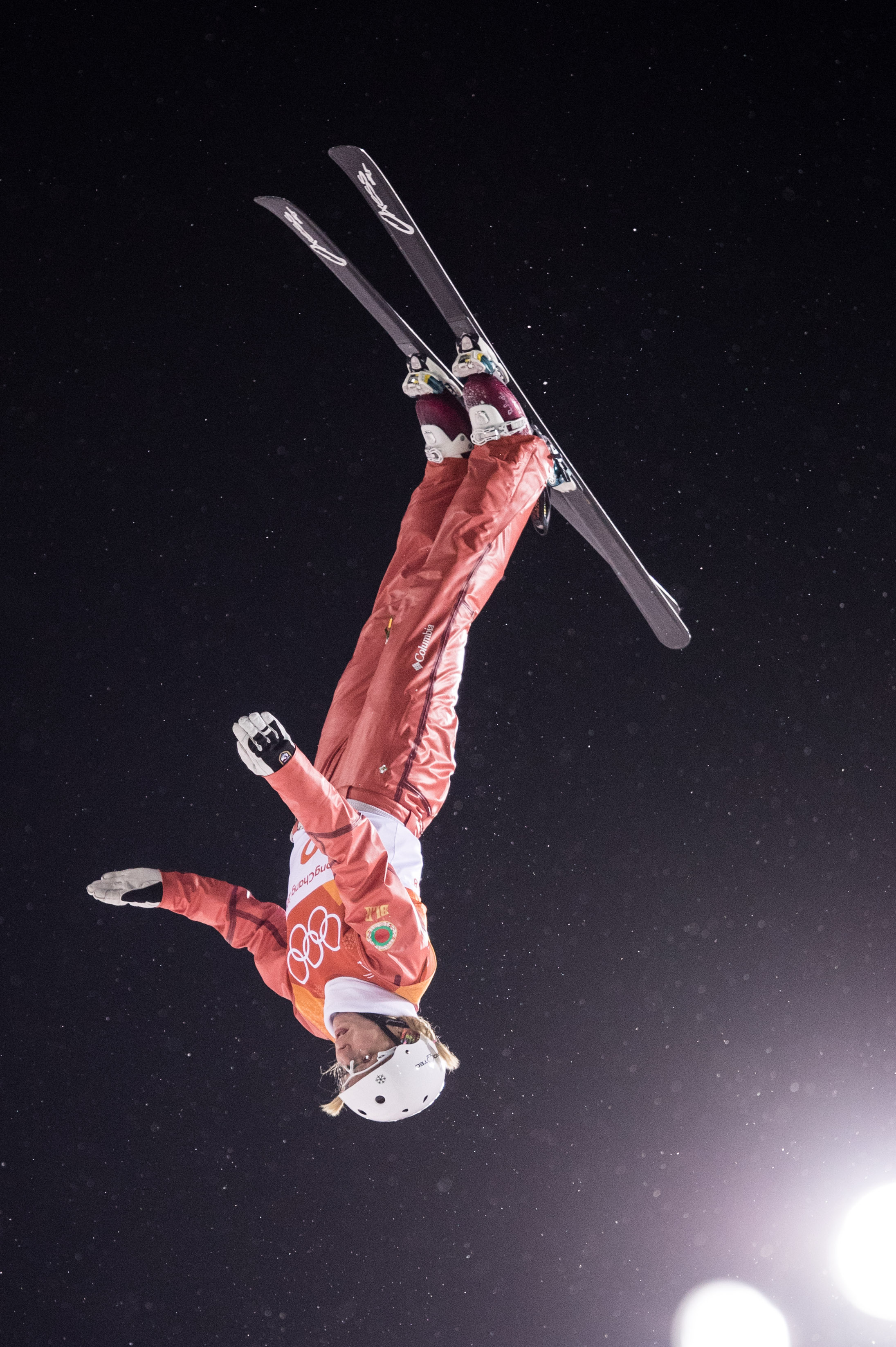 2018年2月16日,白俄罗斯自由式滑雪选手胡什科娃在比赛中。新华社记者吴壮摄