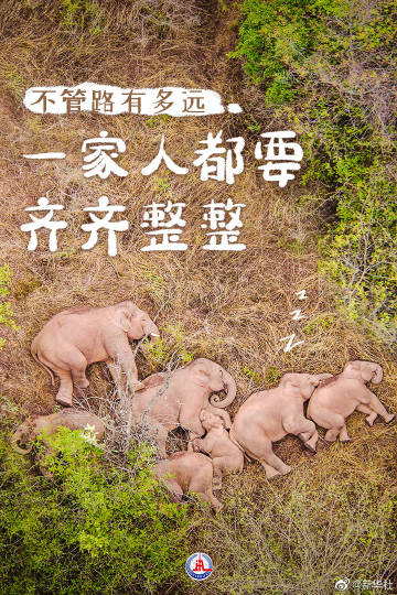 【#大象治愈系睡姿#】累了就歇会儿,不管路有多远,#一家人都要齐齐整整#。#云南北迁象群睡觉休息画面#