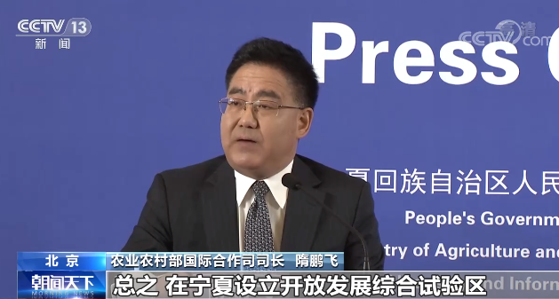农业农村部国际合作司司长 隋鹏飞:在宁夏设立开放发展综合试验区,突出开放,就是要发挥宁夏的区位优势,打造西部地区农业对外开放的新高地,推动“一带一路”农业合作更加务实深入发展。