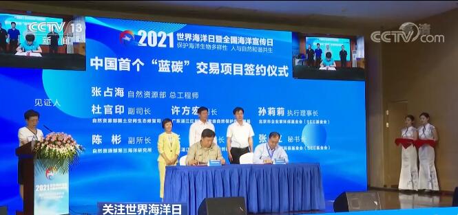 央视网消息:在6月8日,也就是世界海洋日的当天。我国首个以海洋实现固碳的蓝碳项目交易签约。