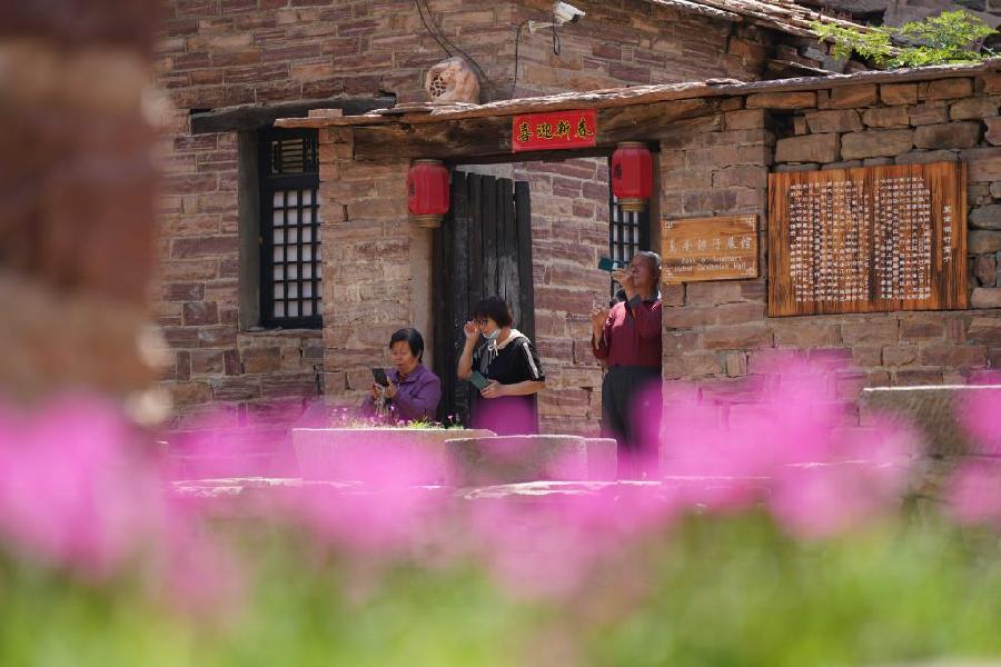 游人在河北省邢台市信都区路罗镇英谈村参观游览。(新华社记者骆学峰摄)