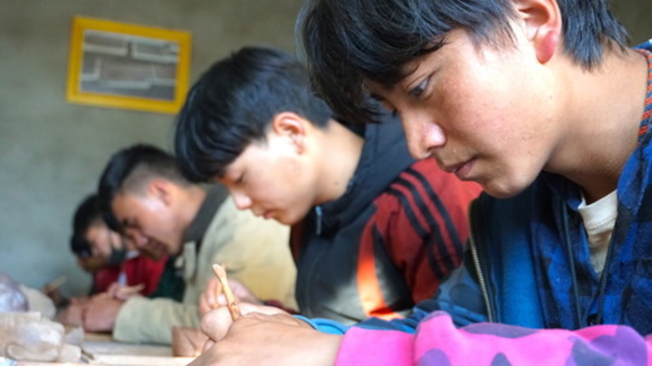 藏族青年在泥塑传习所里学习制作泥塑。新华社记者 白玛央措 摄