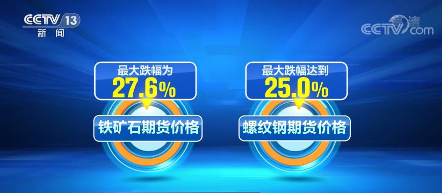 大宗商品中最引人注目的铁矿石期货价格最大跌幅为27.6%,螺纹钢期货价格最大跌幅达到25.0%,铜、铝、PVC的期货价格跌幅也分别达到8.6%、9.5%和9.0%。