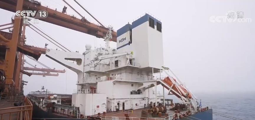 在大连港铁矿石码头,这艘17万吨载重的铁矿石货船正在卸货。港口工作人员介绍,近期铁矿石到港量明显增加,最近一个月他们的到港量就在200多万吨左右,比年初增加20%以上。